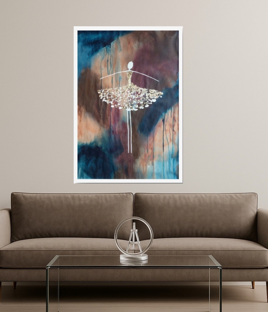 Skal vi danse. akryl på lerretsduk. innrammet i enkel "gull" ramme 50×70 cm 1900 kr